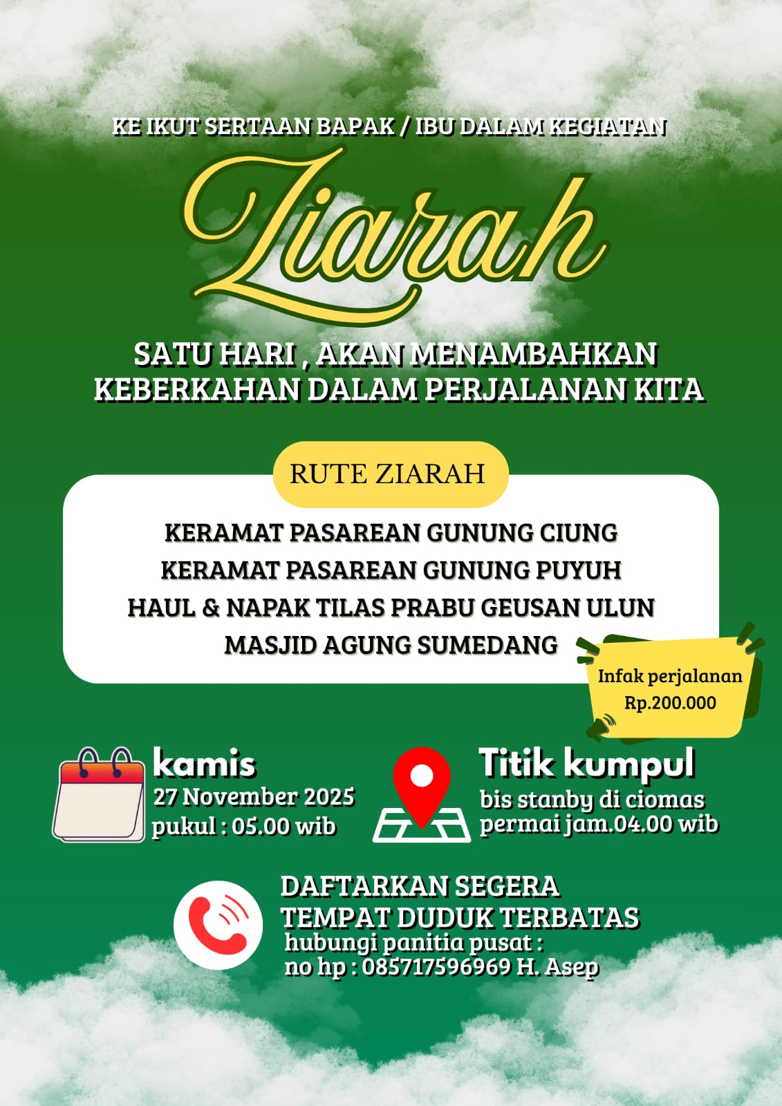 Bogor, KABUYUTAN.com – Pondok Pesantren Ar-Ruhama, Kelurahan Padasuka, Kecamatan Ciomas, Kabupaten Bogor, mengaggas ziarah ke sejumlah keramat para karuhun sepuh Sunda di Sumedang, yang akan dilaksanakan pada Kamis (27/11/2025) me...